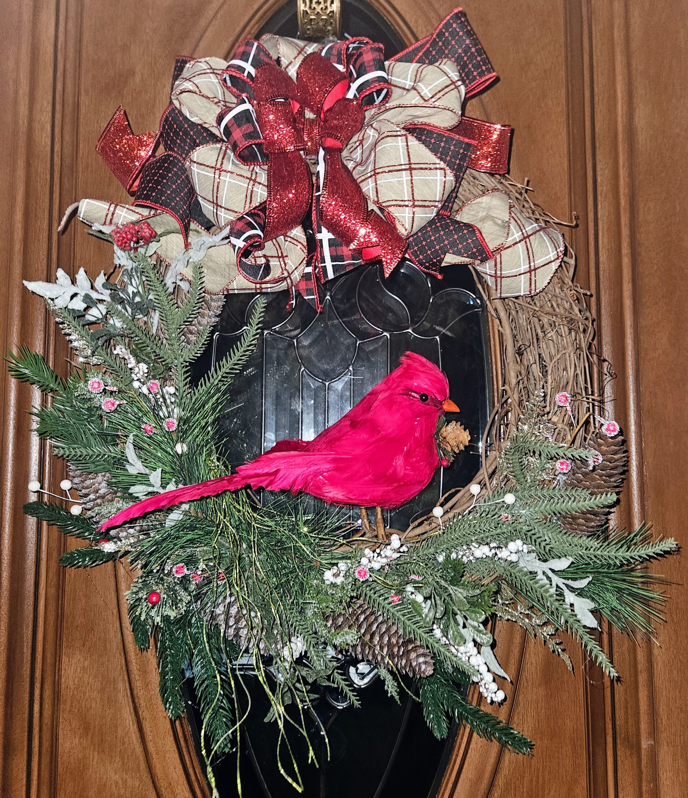 Red Cardinal Winter Grapevine Wreath – Handmade Holiday Door Décor