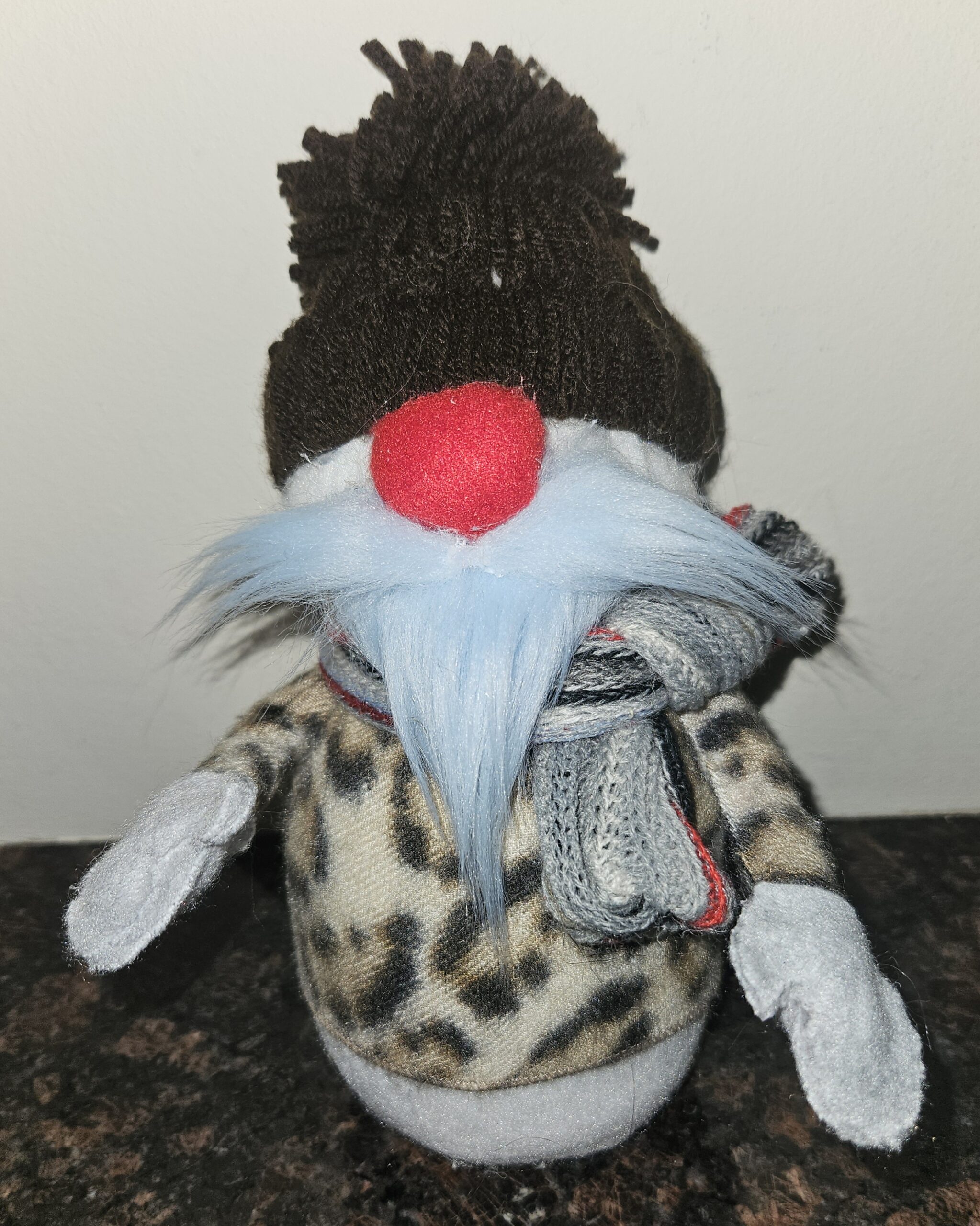 Handmade Snowman Gnome with Leopard Sweater – Winter Holiday Décor | Blue Beard Scandinavian Gnome